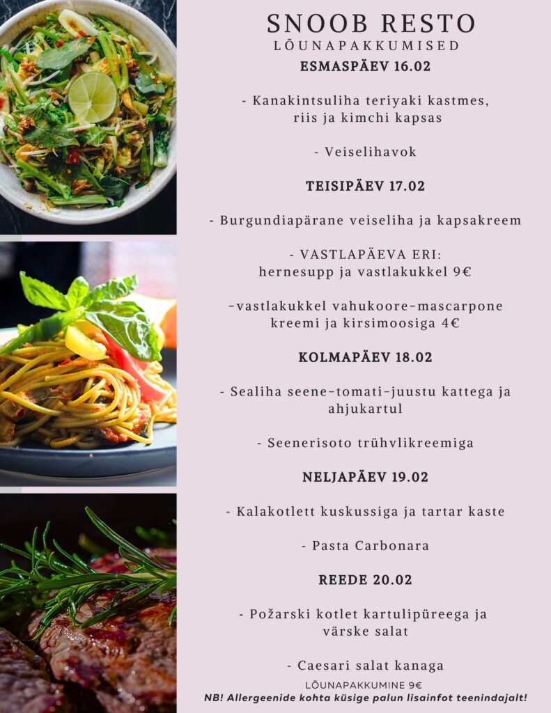 Igal tööpäeval uus ja põnev lõunapakkumine! Lõunapakkumisi valmistame piiratud koguses ja mõnikord saavad need väga ruttu otsa.